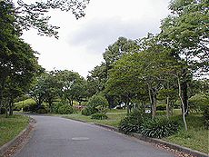 (左)万葉公園の表示が… (中)(右)勝山公園内の景観です