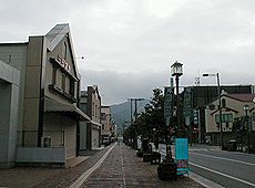 (左)JR柳井駅北口の景観です (中)柳井駅北口の麗都通りで