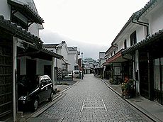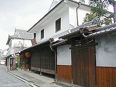 白壁の町並み:間口が狭く奥行きの長い特徴のある家々がつらなる古い町割り