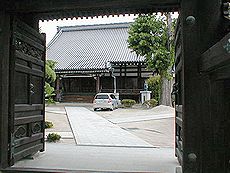 光台寺:明朝の様式を模す独特の桜門は、その下で手をたたくとワンワンと響