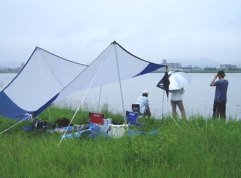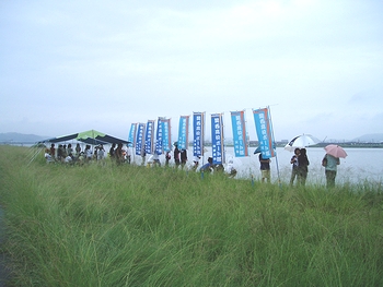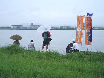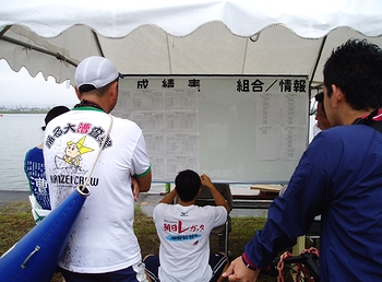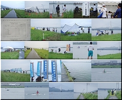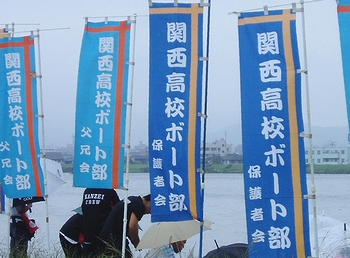 そんな中で熱戦が展開中。これらの様子を少し撮りましたのが、挿入の画像なんです(^-^)毎回同じような光景ですけど、岡山の関西高校ボート部の皆さん…どの大会でも測ったように同じ場所にテント・幟りを張っておられます。