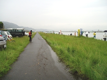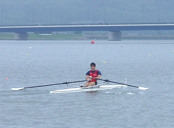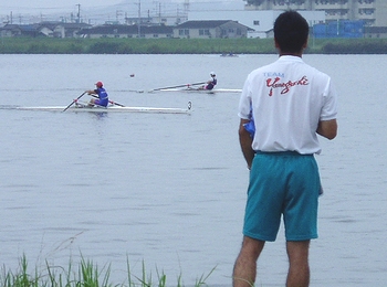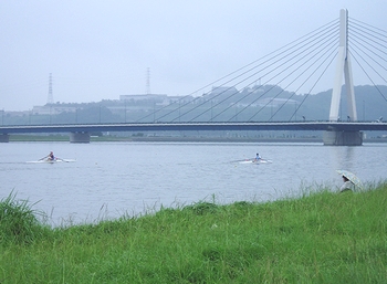 先々週の日曜日でしたか…小雨のパラつきます中で「第62回国民体育大会中国ブロック大会ボート競技」が開催されておりました。河川敷にジョギングで向かいますと結構賑やか。