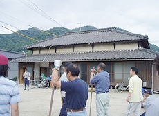 この臨時集会が終わりますと、早速、集会場取り壊しのため備品等を近くの空き地に設置しましたコンテナ2凍に皆で手分けして運搬です。