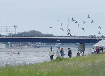 集合時間の5分前にノンビリと河川敷にと出かけますと、相変わらずの田舎時間ですから困ってしまいますよ(^-^)