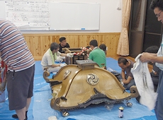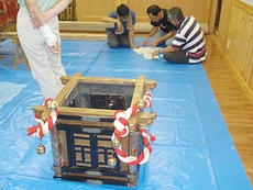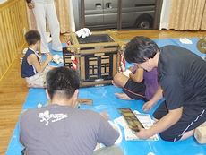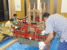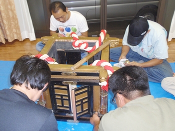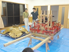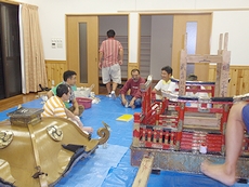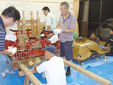 八幡神社から神輿を持ち帰り、いよいよ神輿磨き開始です(^.-)☆A