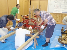 真鍮部分を金属磨きのオイルを付けて磨くのですけど、毎年行っていましても1年を経ますと随分汚れてしまいます。ですが、この汚れた部分を丹念に磨いて行きますと光輝いて来ますから嬉しいものです。今からのスケジュールは、