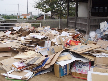 で、GONsanも30分ばかりお手伝い(^-^)リサイクルの主な品目は、新聞・古雑誌、アルミ缶、段ボール、そして衣類。