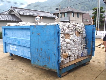そして、産廃業者の2台のワゴン車にと整然と積み込みです。