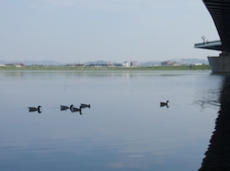 ただ、激しい降雨の何日か後ではこぅした景観によく遭遇しますから…この景観を決して嫌いではありませんGONsanなんであります(^.-)☆まぁそのような事はさて置きまして、芦田川大橋下では相変わらず5羽のカモsan達が仲良く暮らしておりますネ。