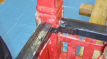 でも、そぅいぅ下働きの要員も必要ですから…神輿の一部にぐらつきがありまして、この箇所を銅板で固定し止めて貰いましてシッカリしたのですけど、どなたかこの銅板部分を黒ペンキで塗っておられましたねぇ〜