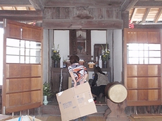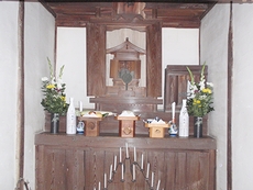 ご住職の読経後には少しばかり法話。なんでも、ご住職のお話しによりますと、この吉広神社の祭壇は350年余ばかり昔のシロモノとか…