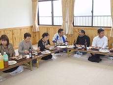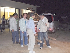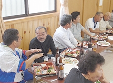 どうも年寄りの皆様の腹時計は30分ばかり進んでいますようで、困ったものなんであります(^-^;はてさて、何から取り掛かってイィものか…と暫し思案するヒマもなく、まずは集会所前の広場の片隅に置いて貰いましたダンプ2車分の真砂土を運び整地です(^.-)☆