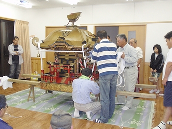 大工sanもおられれば金属加工のプロもおられますし、手に技術をお持ちの方が実に羨ましい感じですけど、本当に何かと助かりますネ(^-^)9/28(日)の小宮祭りが済みました夕方には神輿にタスキ掛けを行いました後で、廻す練習をしたい…と、祭り年長が言ってましたネ(^-^)//"