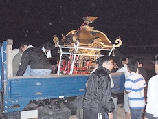 この間には御神輿を車に積んで八幡神社にと奉納です。これでどぅにか前夜祭・本祭りへの準備は概ね完了。