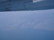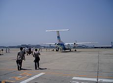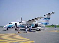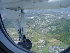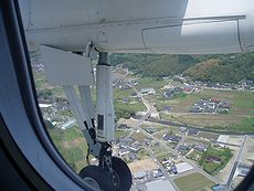 (左)(中)天草空港への着陸直前の上空からの景観です (右)天草エアライン<ダッシュ8>です