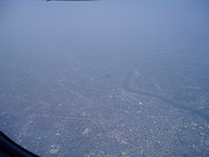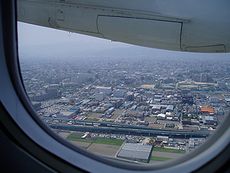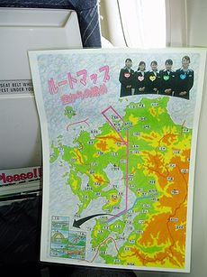 (左)(中)博多上空の景観を撮りましたものです (右)福岡空港〜天草空港までのルートマップです(^-^)/