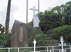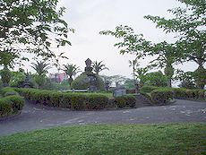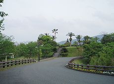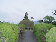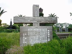 (左)キリシタン墓地から天草切支丹館を (中)(右)殉教公園内の景観です