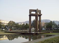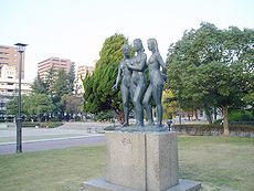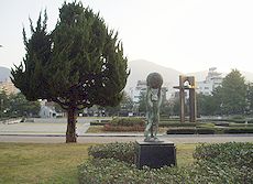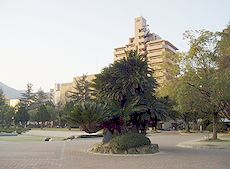 (左) 堺川沿いの緑地を通って呉市役所横の中央公園にと散策続行です(^.-)☆ (中)(右)中央公園内の景観です(^.-)☆