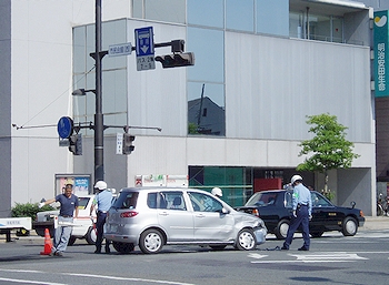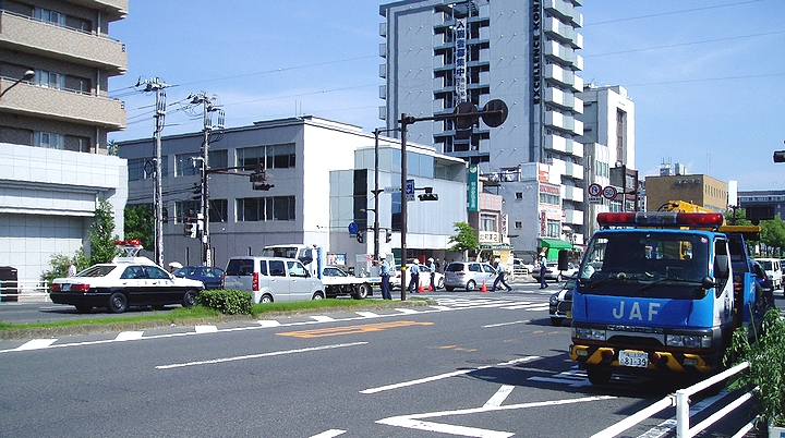 広い交差点で、日頃あまり車輌事故が発生しますような場所でもないのですけど、連日の猛暑のせいなのでしょうか…