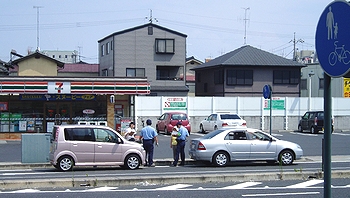 国道2号線から左折しイトーヨーカ堂横の通りに入ってスグの場所で2台が停車。そして、その後方にパトカーが1台駐車の状況でありました。