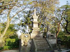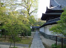 本堂正面には浮彫りの扉を持つ唐門が優れた威容を見せ、裏に廻ると始祖を初め歴代藩主の霊廟や墓塔が、静かな小松林の中に風格のあるたたずまいを見せています。
