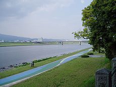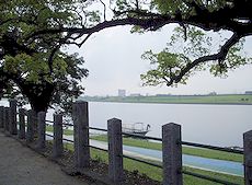 ↑↓ 水天宮境内から筑後川を展望です(^.-)☆