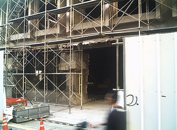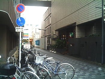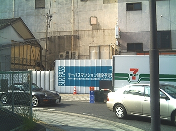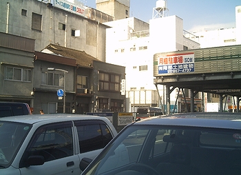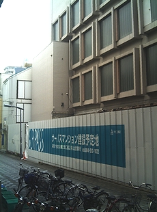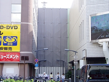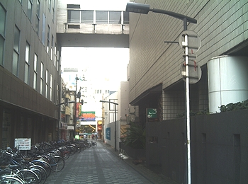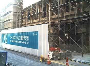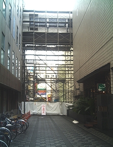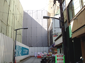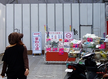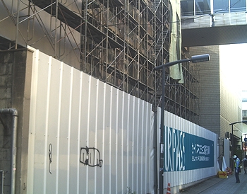 GONsanは、今でも時々この“空中廊下”の下をつぃつぃ通りますのですねぇ(^-^; 工事中ですから行き止まりで通り抜け不可。にも拘わらずボケッとしていまして駅側から進入。