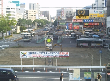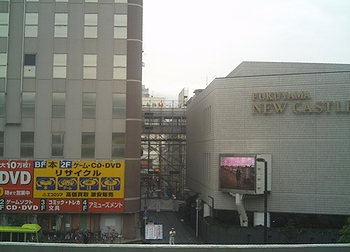 永年、市民の皆様に親しまれて来ました昨年10月に閉店したダイエー福山店の“空中廊下”の撤去工事が今月上旬に始まりましたけど、少し寂しい気持ちですネ。ダイエーの東館と西館を4階部分で繋いでいました“空中廊下”…ダイエー福山店の全盛時には、大勢の市民の皆様が利用されましたのでしょうけど、閉店後の跡地利用では不要となってしまいましたから、撤去もやむなしなのでしょうけど…もぅ随分前の中国新聞sanが、こんな記事で撤去工事開始を伝えておられました。《福山駅前のシンボル、撤去へ》--- 2006/09/12 中国新聞 ---昨年10月に閉店したダイエー福山店の東西両館を結ぶ渡り廊下の撤去作業が11日、始まった。分譲マンションに生まれ変わる西館の本格的な解体工事に伴う工事。10月上旬まで続き、市民に親しまれてきた「駅前のシンボル」は姿を消す。渡り廊下は、長さ約10メートル、幅約4メートル、高さ約3メートルで東館と西館を4階部分で結んでいた。1970年に完成し、駅南口の「空中廊下」として脚光を浴びていた。…と、こんな記事でしたけど、ふ〜ん、この“空中廊下”が出来ましたのは1970年でしたか…と言うことは、ダイエー福山店が開店しましたのはもぅ36年ばかり昔の事になるのですねぇ(^.-)☆この間、市民の皆様にズッと親しまれて来ました“空中廊下”。