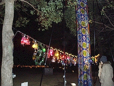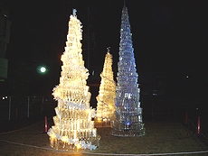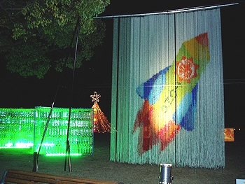 福山の師走の夜を彩る「ふくやまライトフェスタ2005」(実行委員会主催)が18日、福山市西町のふくやま美術館一帯で始まった。市民らが作った色とりどりの光のオブジェが、寒空に浮かび上がった。