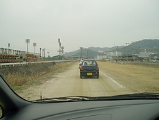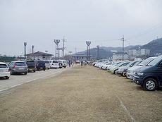 もぅこんな時間から沢山の車が陸上競技場にと向かっています。