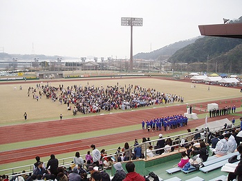 (左)(右)受付を終えスタンドに上がりますと、開会式の真っ最中でありました(^.-)☆