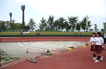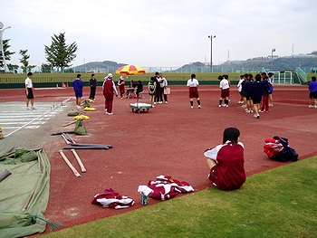 (右)中学生の方々が“砲丸投げ”の競技を行っておられました(^.-)☆
