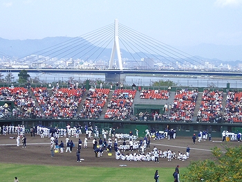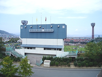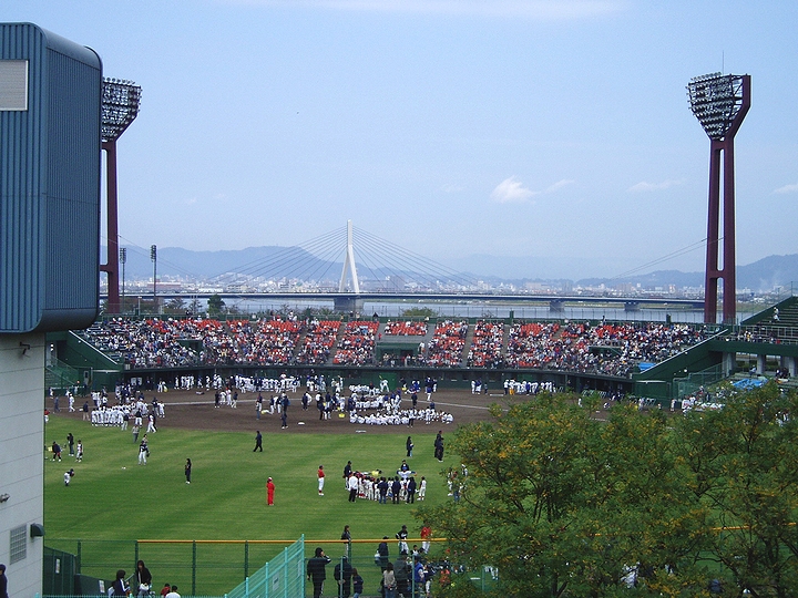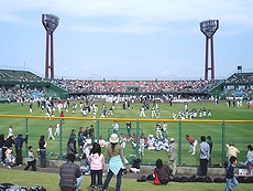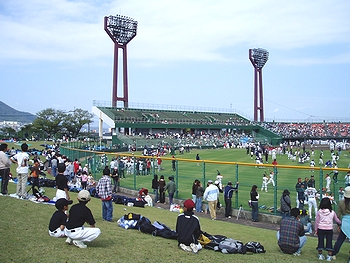 陸上競技場スタンドから福山市民球場の展望です(^.-)☆