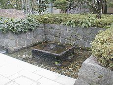 (左) 三島大社内の宝物館脇にも湧き水が… (中)(右)三島大社“神池”です