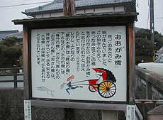 (右)“おおがみ橋”のいわれが表示してありましたけど、冷たい気温ですから素通りでした(^-^)