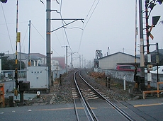 (中)帰路、福知山線の踏切から“石生駅”方向を (右)この道の正面が