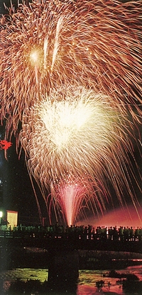 岩瀧寺山門 (中)岩瀧寺渓谷 (右)200年前から伝わる三丹名物の愛宕祭と花火