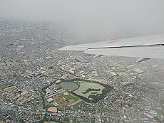 (中)仙台に向かう機内より大阪府上空を撮りましたものです(^.-)☆ (右)あいにくの曇天で眼下の景観は楽しめませんでしたよ(^-^;
