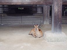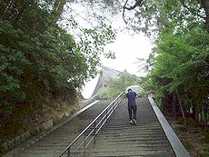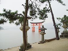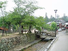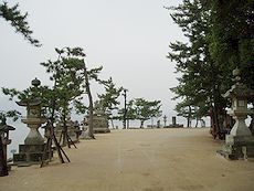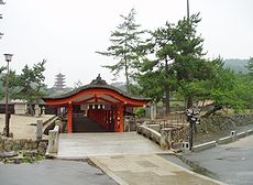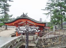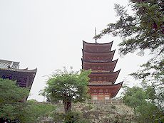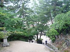 厳島神社に向かって左手の小高い丘に建つ千畳閣は天正15年(1587)、戦没将士の慰霊のために豊臣秀吉が寄進した入母屋造りの大経堂です。