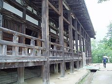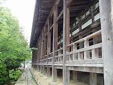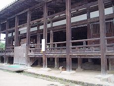 秀吉の死により、天井の板張りや正面入口などは未完成のままとなっていますが、壮大な風格を漂わせる建造物です。また、隣に建つ高さ27mの五重塔は、応永14年(1407)の創建と伝えられ、和洋と唐様とを巧みに調和させたひときわ美しい塔です。