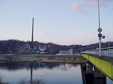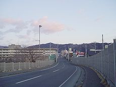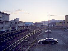(左) 閉伊川と小山田橋です (右)早朝散策からの帰路、宮古駅を
