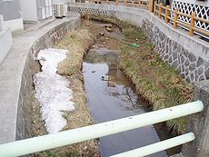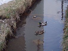 (左) (中)宿泊ホテル近くの景観です (右)あまりキレイでもありません小川に二羽のカモが…