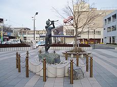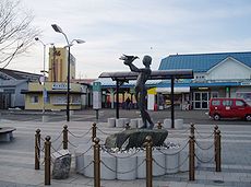 (中) JR宮古駅を撮りました (右)宮古駅前の景観です「うみねこと乙女」の像です(^.-)☆