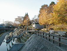真岡駅 (中)駅前近くの不動産屋さんの事務所前で (右)真岡駅から徒歩5分に位置します“城山公園”付近で