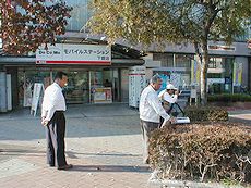 ヒマなものですから、こぅして写真を撮っておりましたら、同じようにお二人の男性が駅前の写真を撮っておられます(^.-)☆