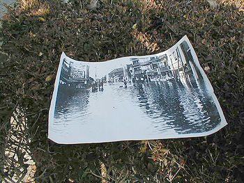 今から58年程度昔に大洪水で、この写真のように下館駅前は大変だったようです