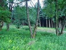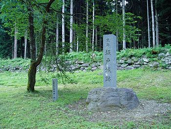 下坂戸集落東方緩斜面の杉木立の中に城主館、家臣団の屋敷跡が残り、その背後の坂戸山(標高634m)には、大規模で堅固な山城遺構が残っています。昭和54年、国の史跡に指定されました。この坂戸城の外堀機能を果たしていた魚野川が、坂戸山にぶつかって大きく蛇行し、渦巻く所を「銭淵」と呼びます。平成8年河川改修により、その一部を残して銭淵公園として生まれ変わりました。