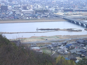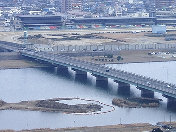 (左)芦田川の中州を結びます親水公園の建設工事が進捗中です(^.-)☆ (右)水呑大橋・競馬場方向の眺望です(^.-)☆
