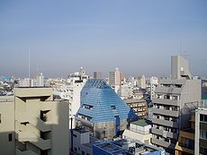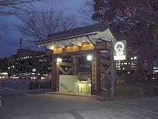 地下鉄“市役所駅”の入口です (右)宿泊ホテルから名古屋駅周辺の早朝の景観を