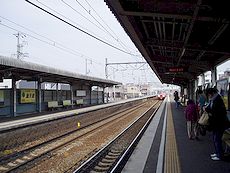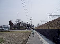 JR東海道線・清洲駅構内で (中)線路沿いをノンビリと歩いて清洲城へ (右)清洲町観光案内図